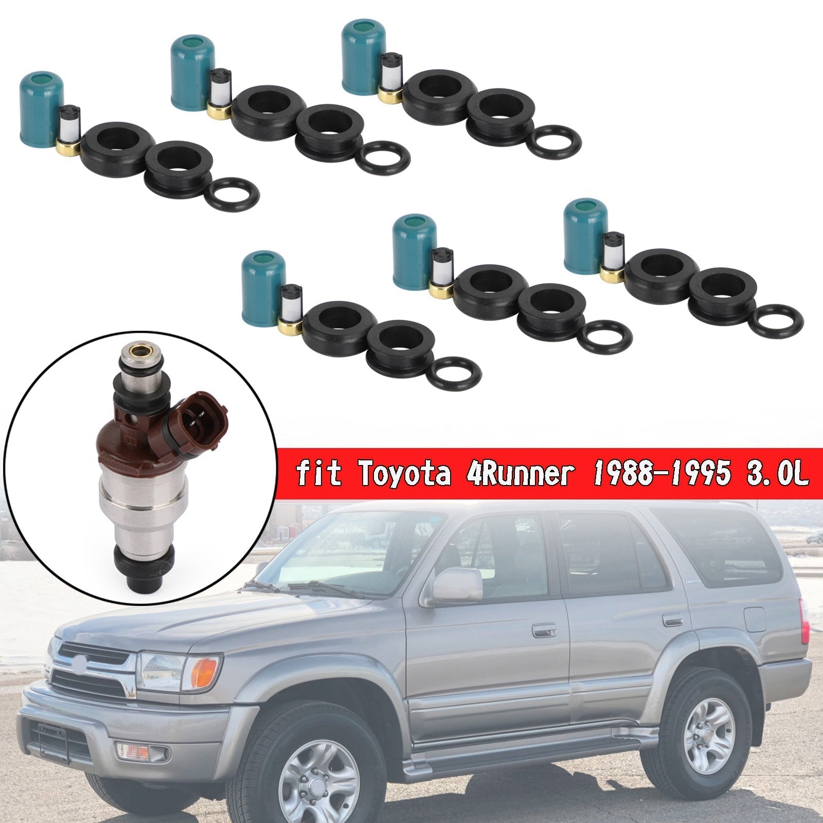 1988-1995 Toyota 4Runner/Pickup 3.0L 3VZE 6PCS Fuel Injectors Repair Seal Rebuild Kit