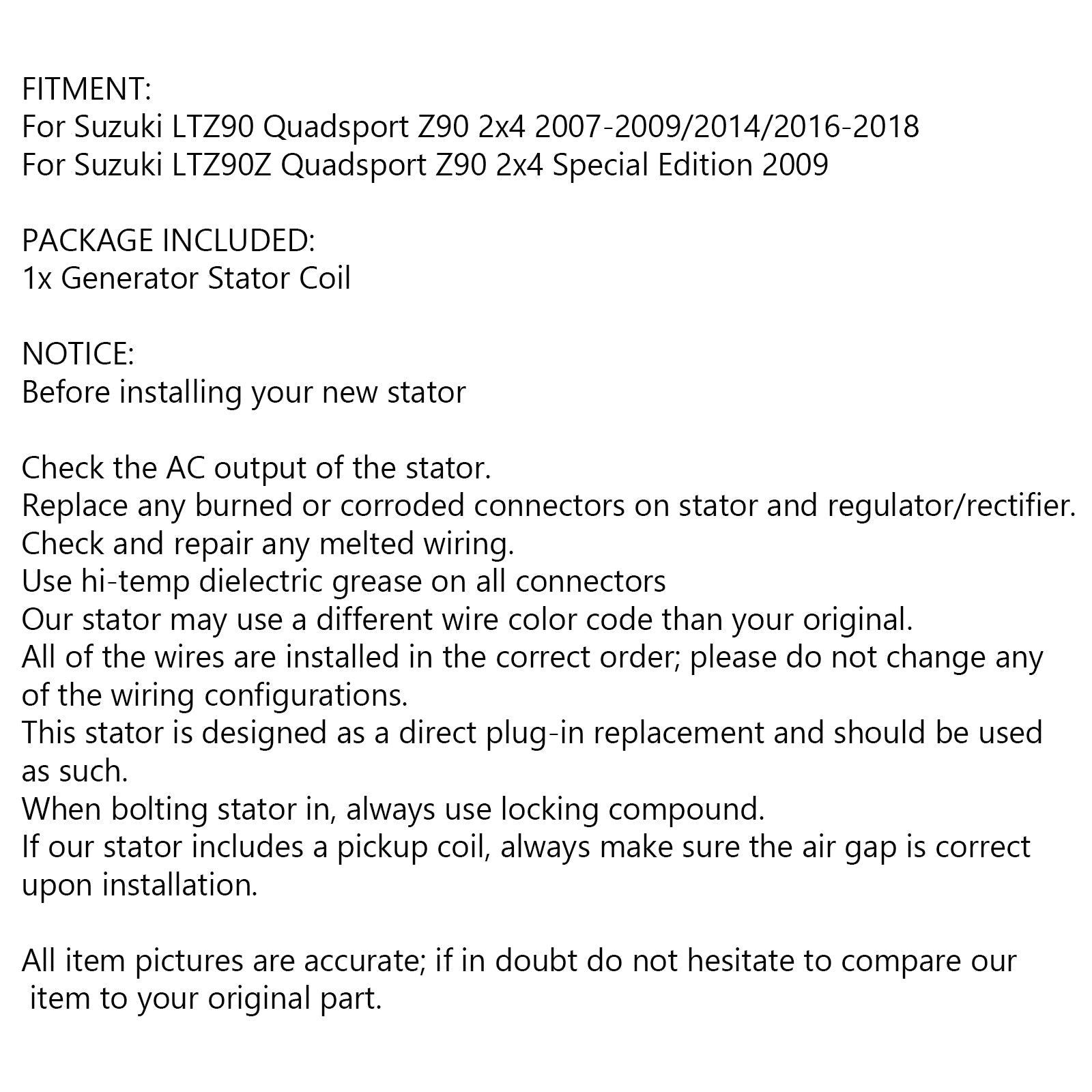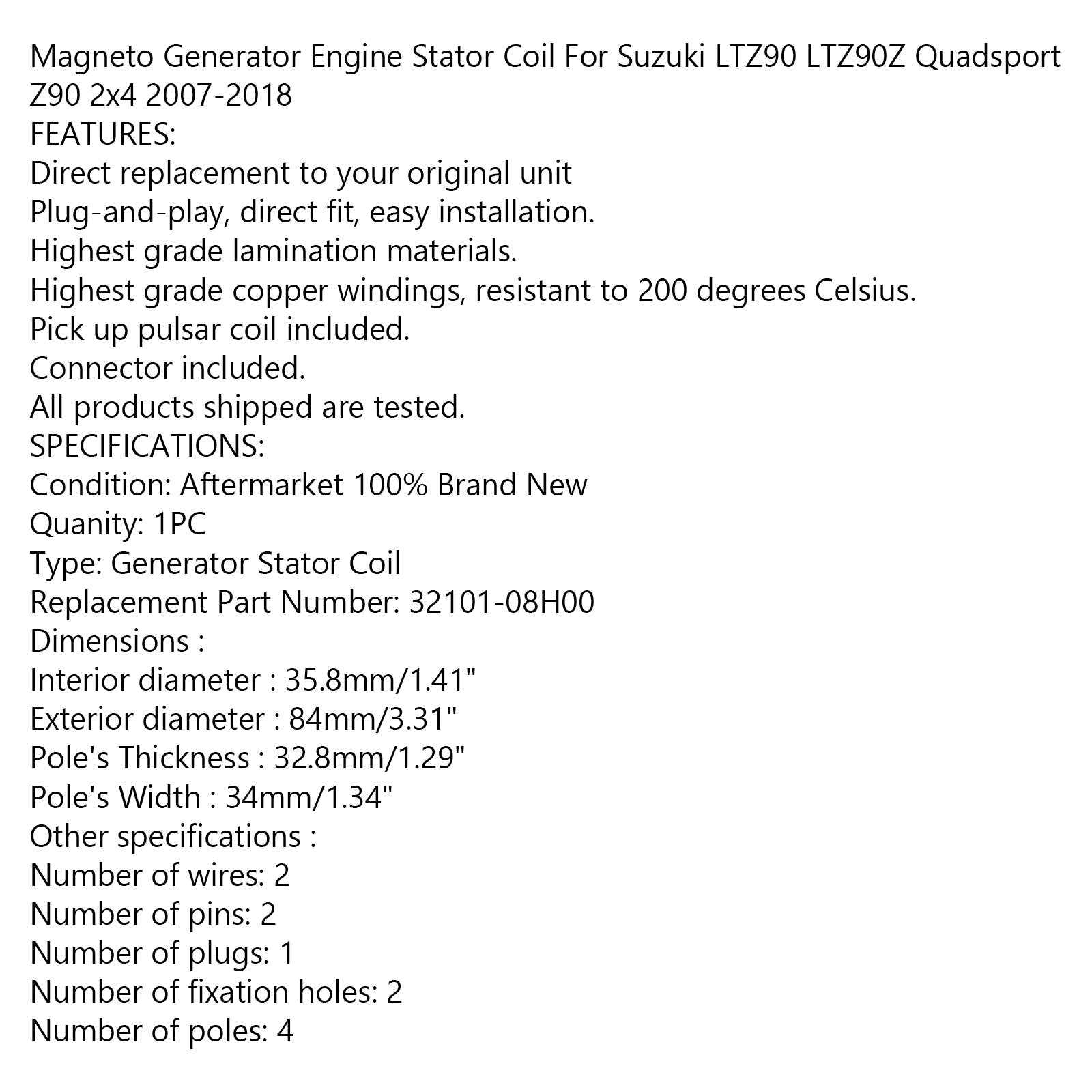 Generator Stator For For Suzuki LTZ90 LTZ90Z Quadsport Z90 2x4 07-18 32101-08H0
