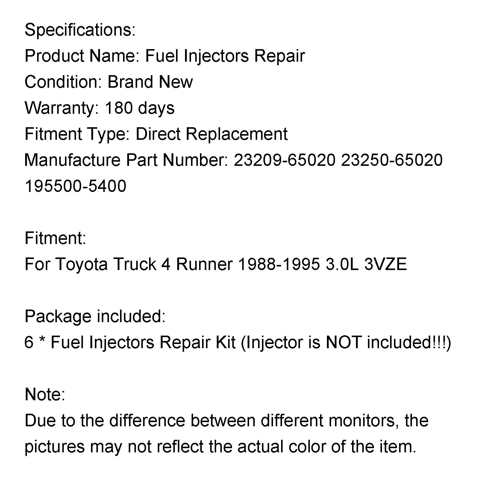 6PCS Fuel Injectors Repair Seal Rebuild Kit fit Toyota 3VZE 1988-1995 3.0L Truck