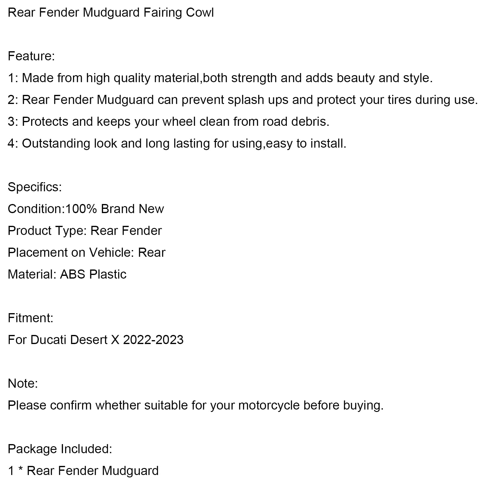 Guardabarros trasero y carenado para Ducati Desert X 22-23