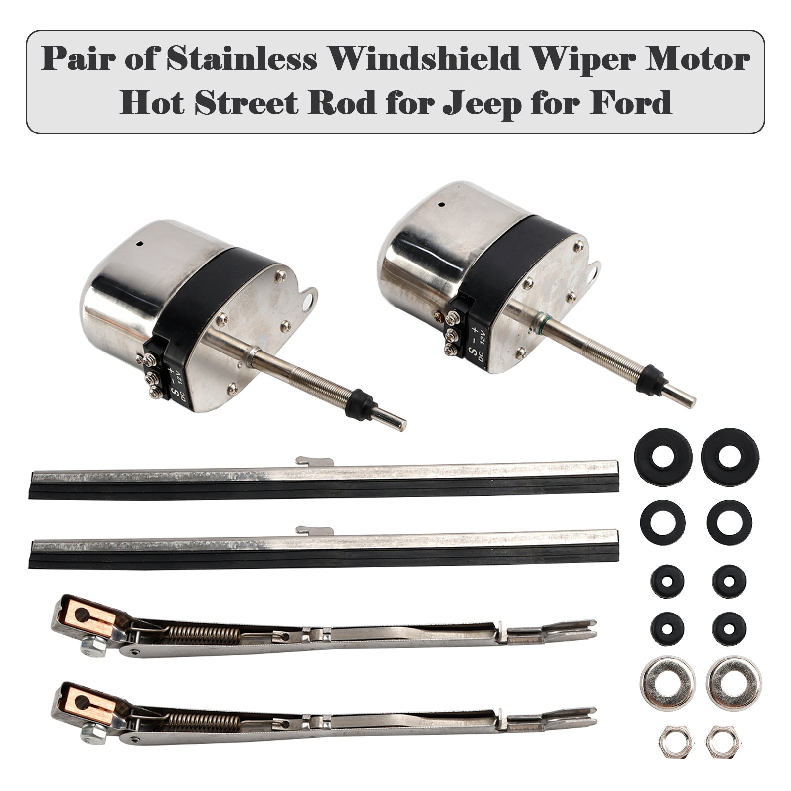 Par de motores de limpiaparabrisas de acero inoxidable Hot Street Rod 558SS S6558 para 32 vehículos Ford, barcos, Jeep y vehículos todo terreno.