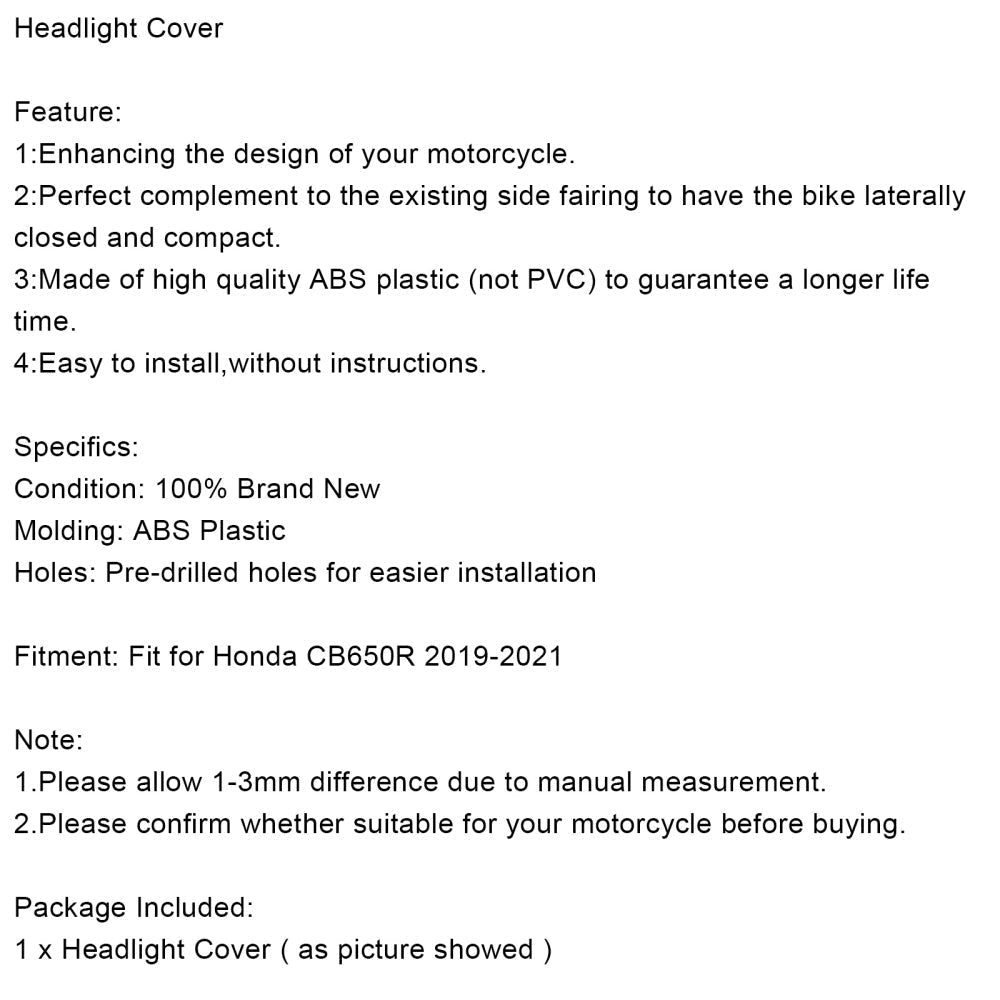 Carenado de plástico ABS para faros delanteros de Honda CB650R (2019-2021)