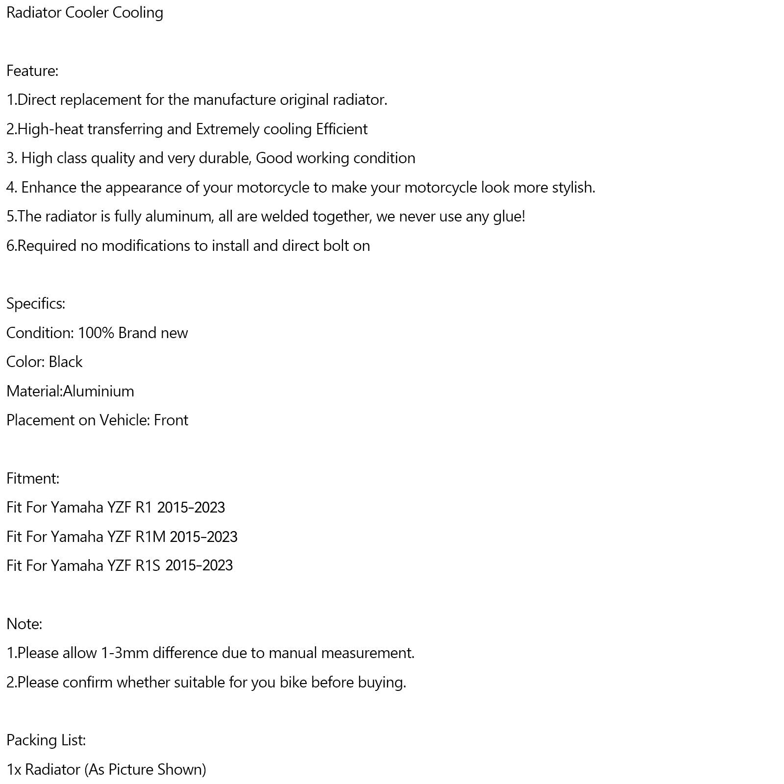 Enfriador de radiador de aluminio para motor Yamaha YZF R1, R1M y R1S (2015-2023)