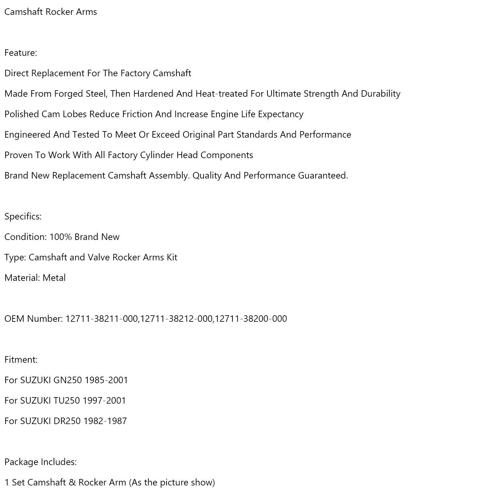 Balancines de árbol de levas para Suzuki DR250 82-87 GN250 85-01 TU250 1997-2001