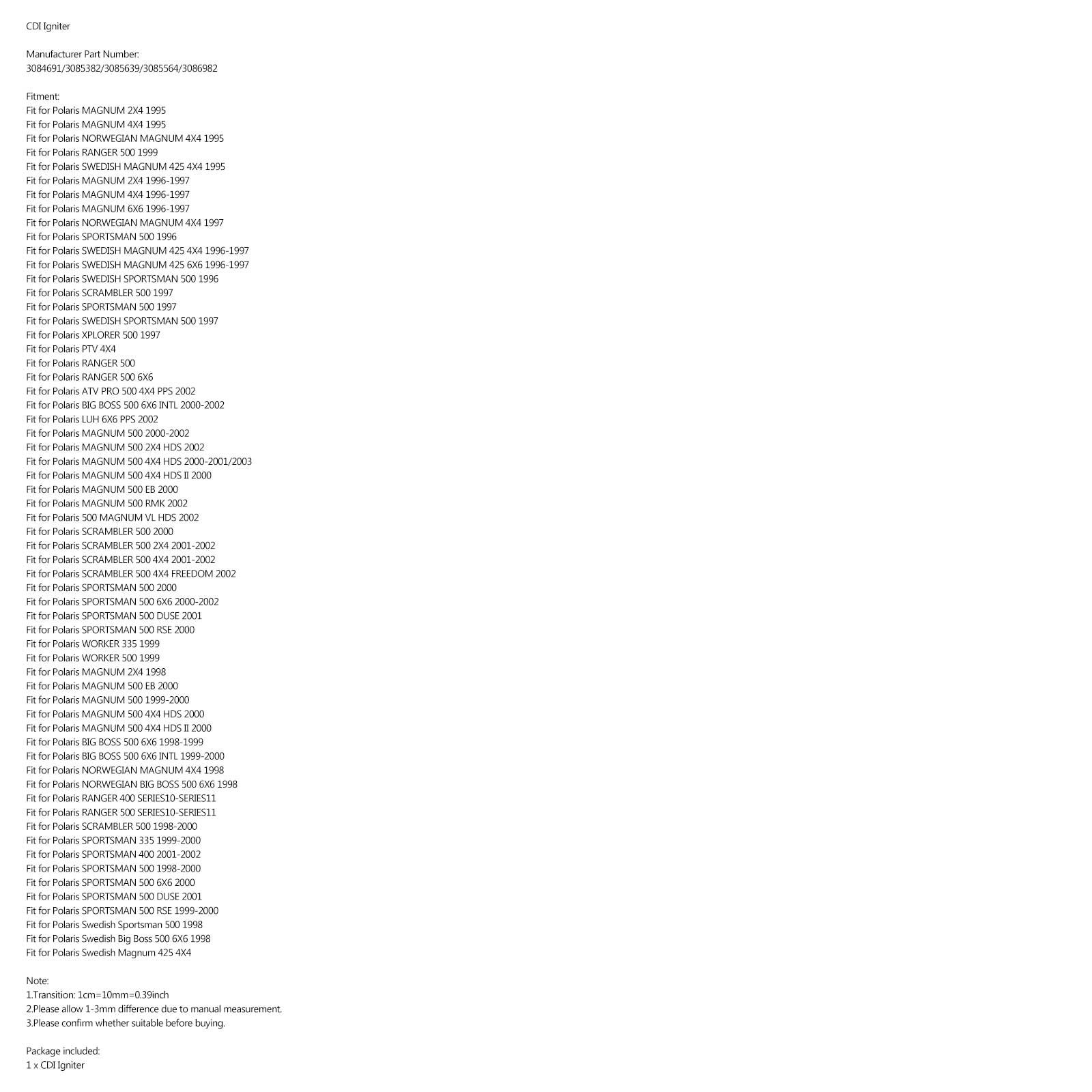 Polaris 3085639 RANGER 500 SPORTSMAN 400 500 BIG BOSS 500 CAJA CDI Encendedor