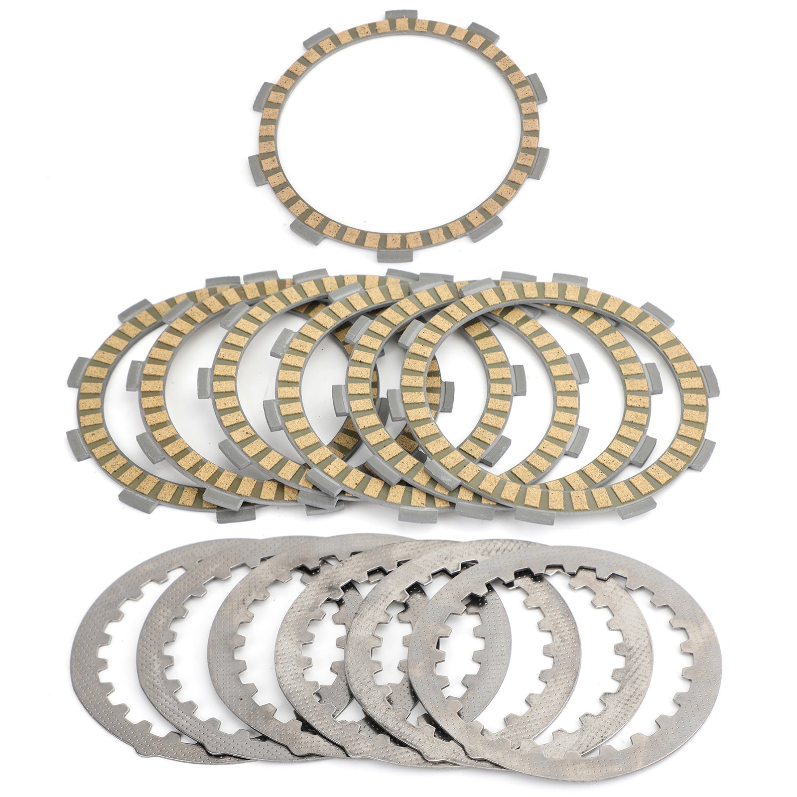 El kit incluye 7 placas de fricción sobre núcleos de acero templado y 6 placas de accionamiento de acero templado.