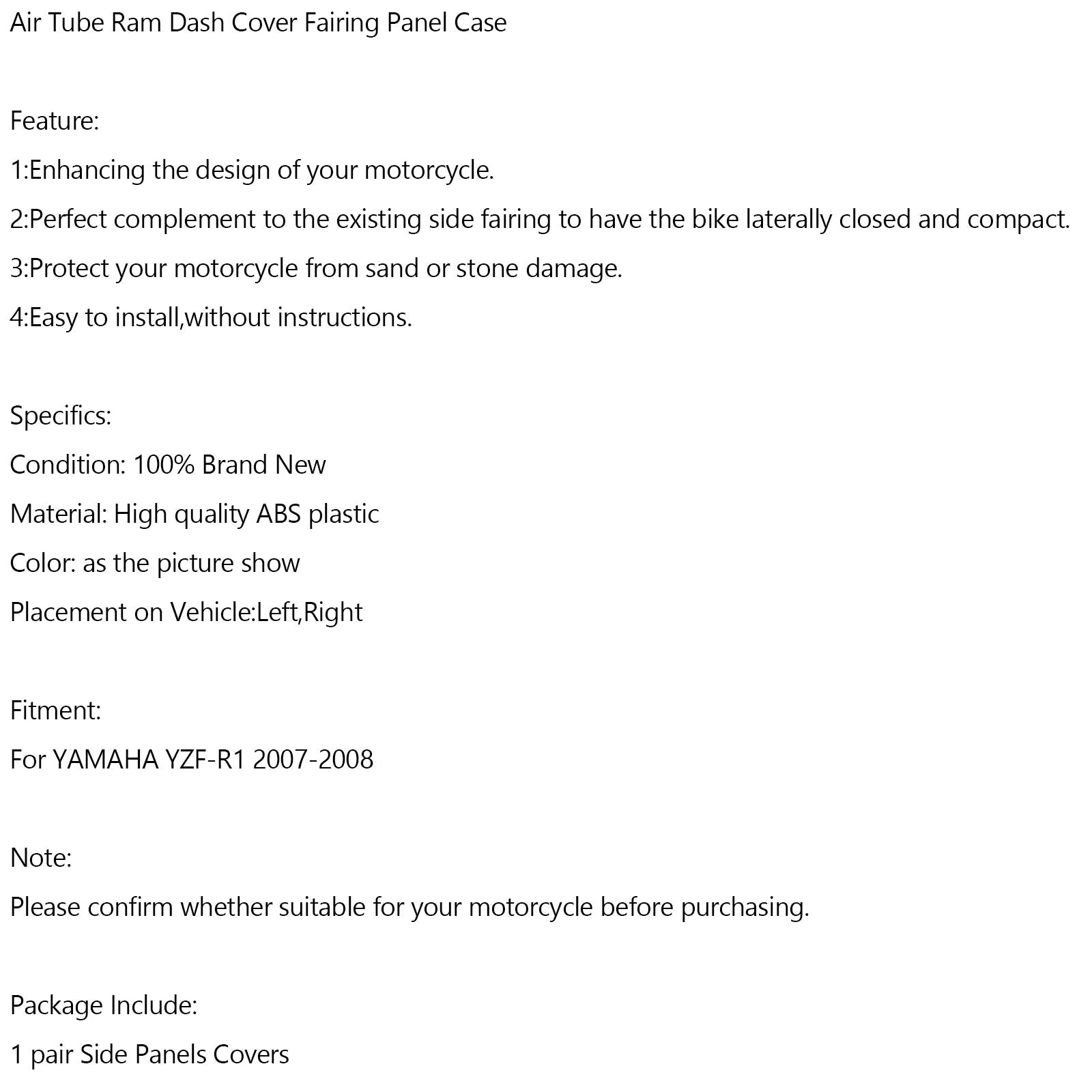Cubierta del panel de carenado del tubo de aire delantero para Yamaha YZF R1 2007-2008