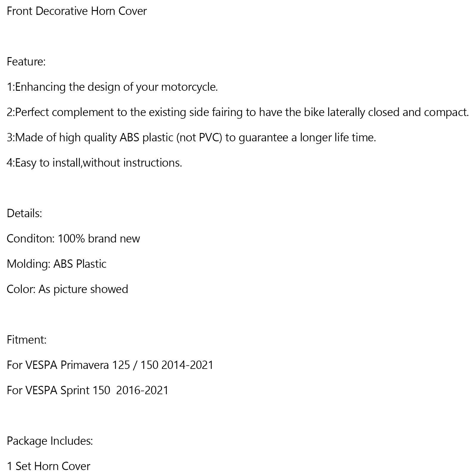 Cubierta decorativa delantera de bocina para VESPA Sprint Primavera 125/150 2014-2021