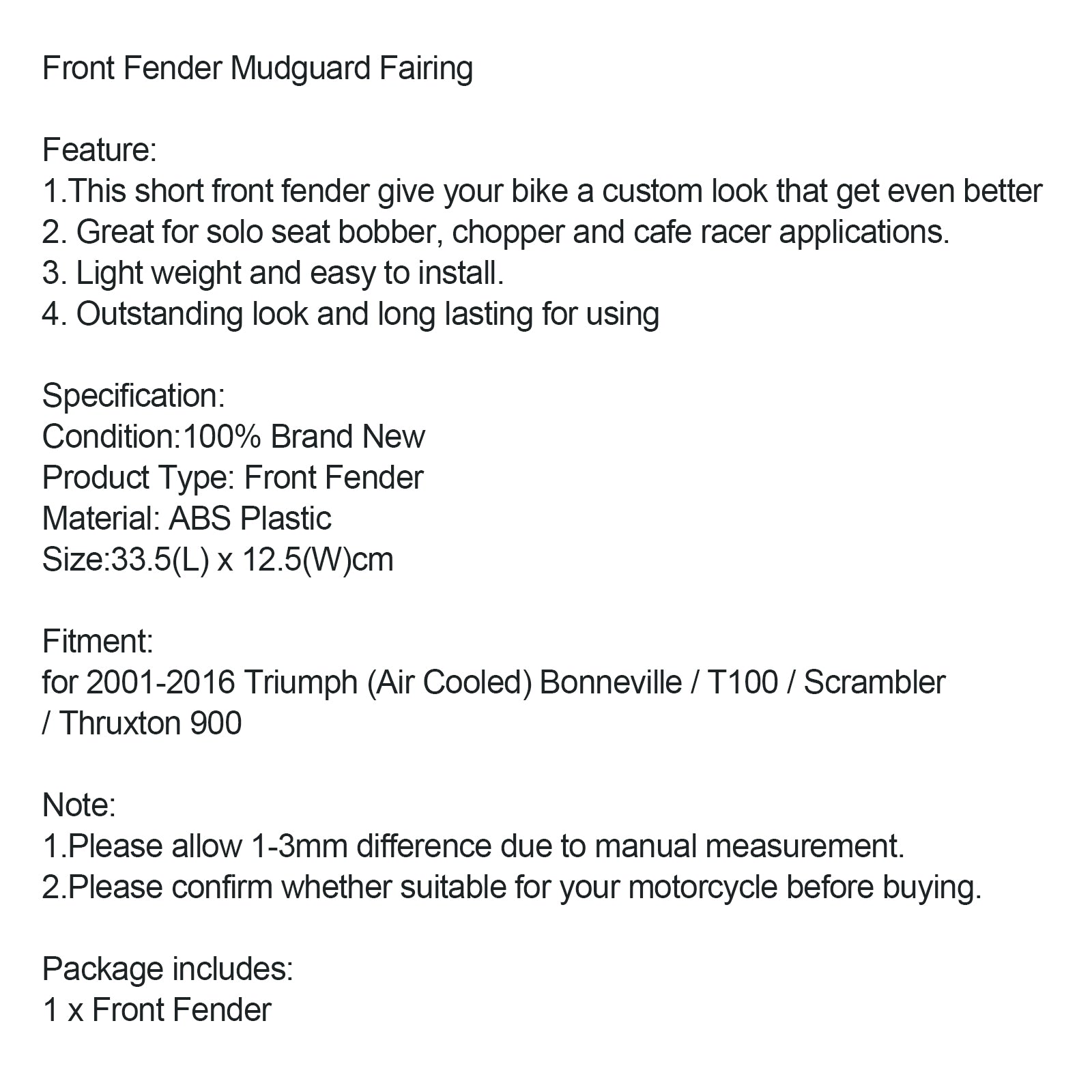 Guardabarros delantero para Bonneville T100 Scrambler Thruxton 2001-2016