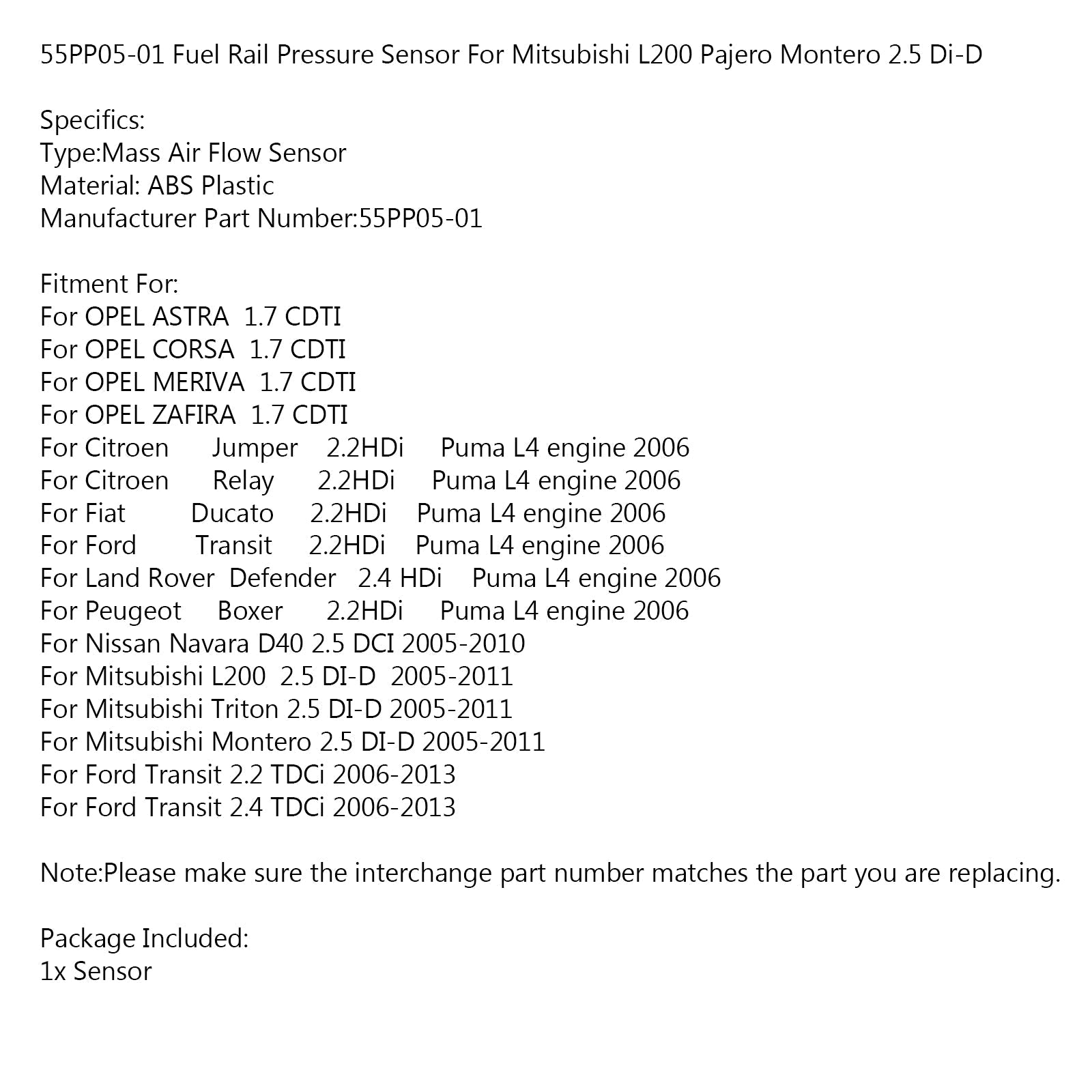 Sensor de presión del riel de combustible para Mitsubishi L200 Pajero Montero 2.5 Di-D 55PP05-01
