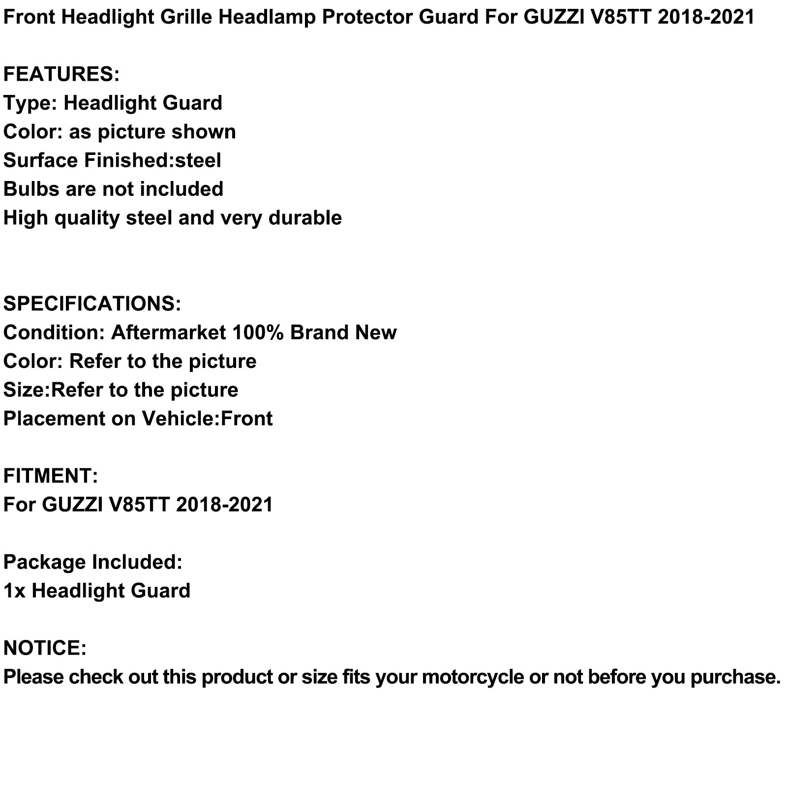 Grille de protection de phare avant pour GUZZI V85TT 2018-2021