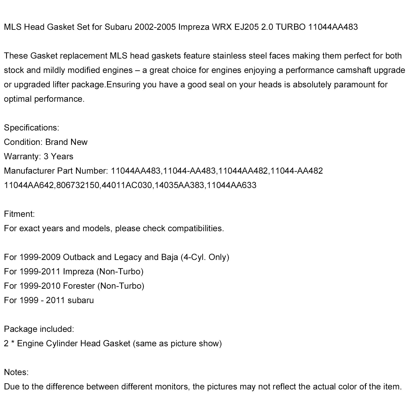 Jeu de joints de culasse MLS pour Subaru Forester Impreza WRX EJ25 2.5 11044AA642