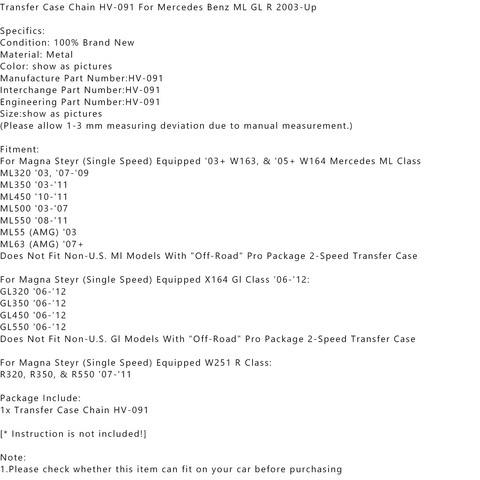 Chaîne de boîte de transfert HV-091 pour Mercedes Benz ML GL R à partir de 2003