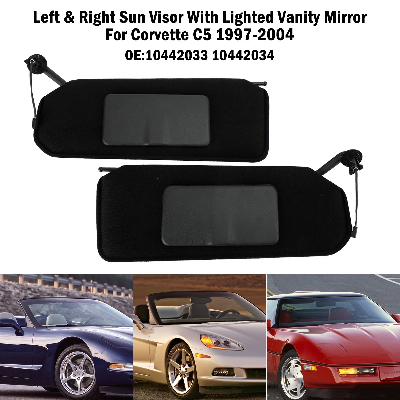 Paire de pare-soleil noirs avec miroir de courtoisie pour Corvette C5 8 cylindres, 5,7 L, 1997-2004, 10442033 et 10442034