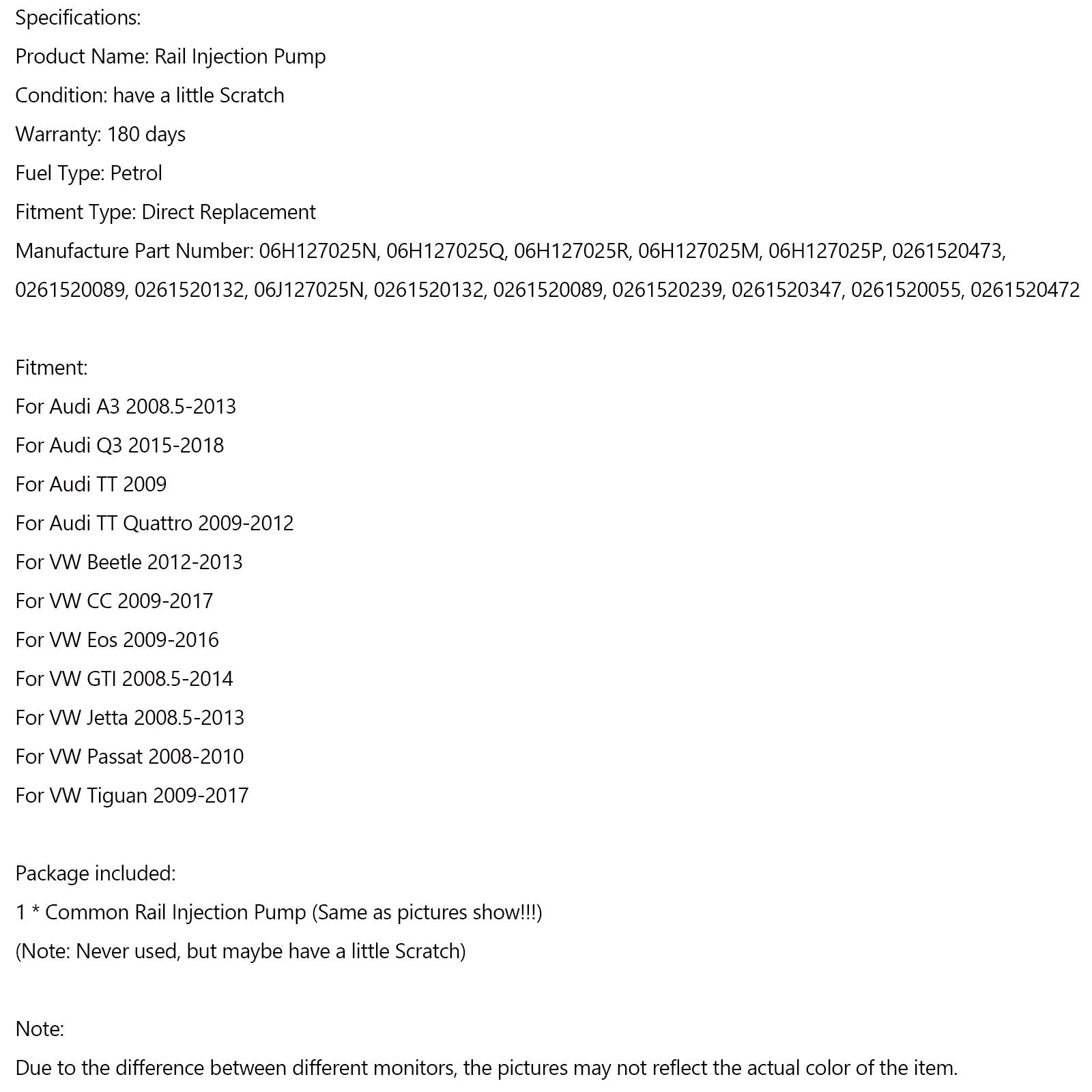 Pompe à carburant haute pression Audi Q3 2015-2018 06H127025N 06H127025R 0261520473 06H127025Q