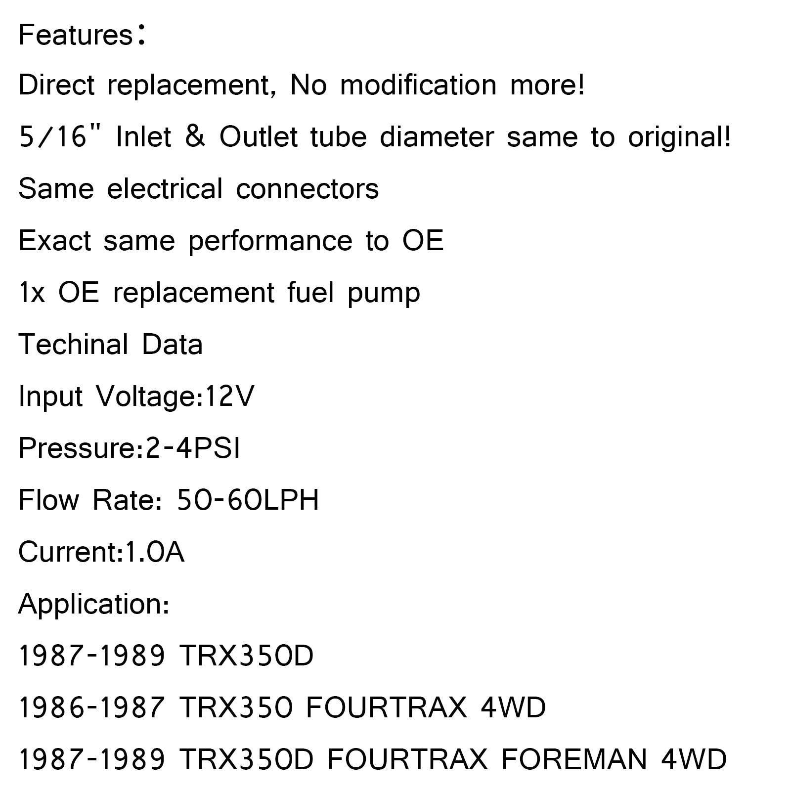 Pompe à essence pour Honda FOURTRAX 350 TRX350 4X4 1986-1987 16710-HA7-672