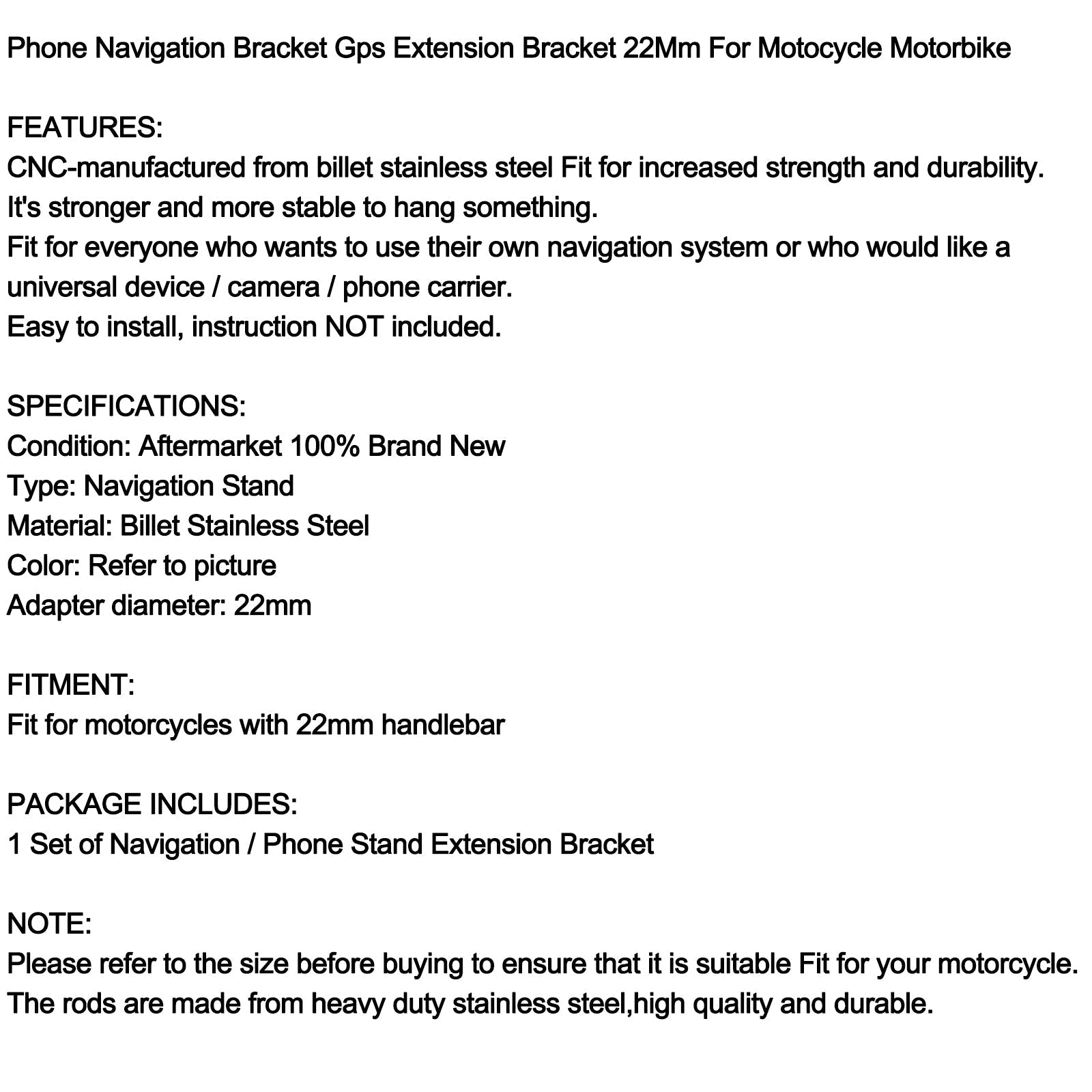 Support de navigation GPS pour téléphone portable, extension de 22 mm pour moto