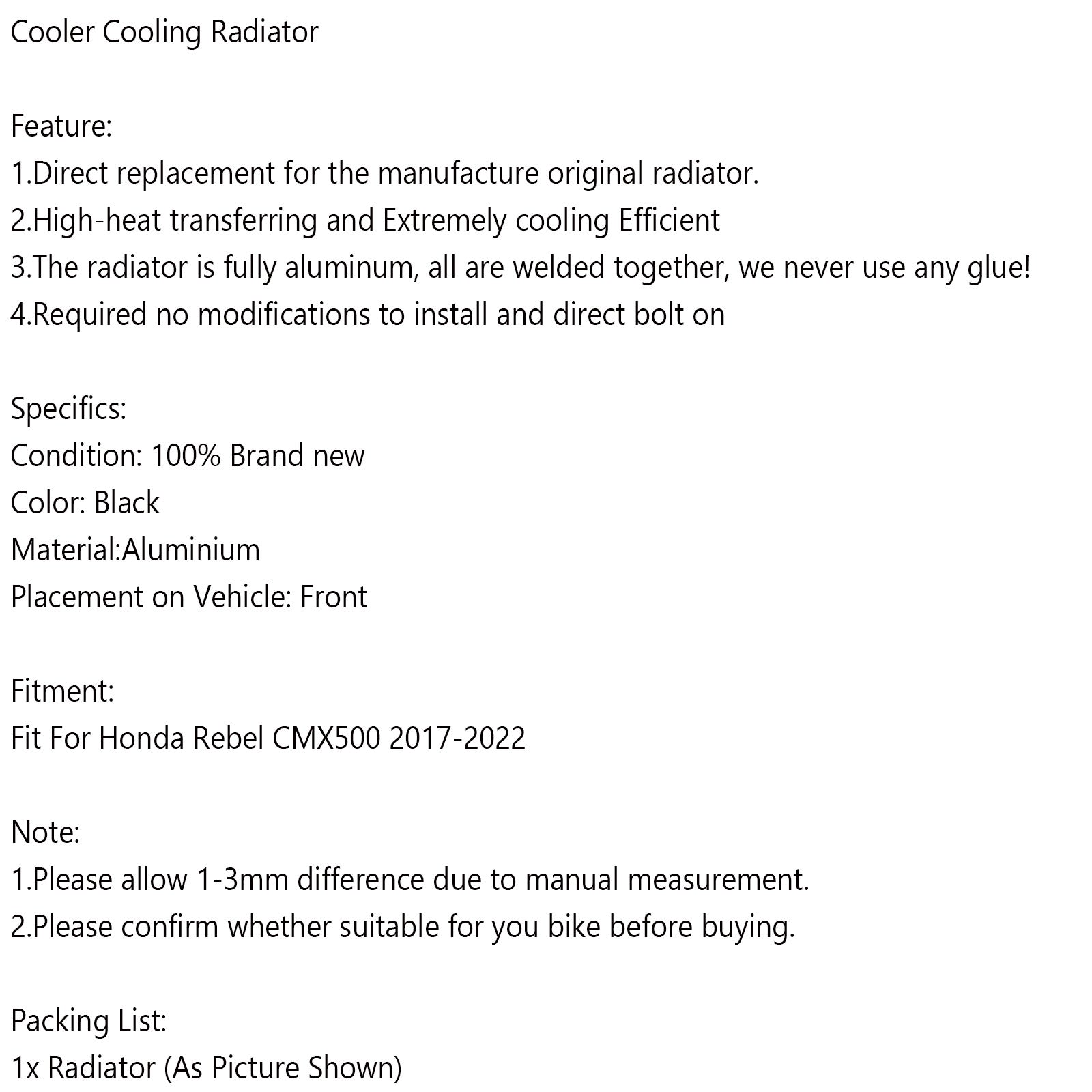 Refroidisseur de radiateur pour Honda Rebel CM 500 CMX500 2017-2022
