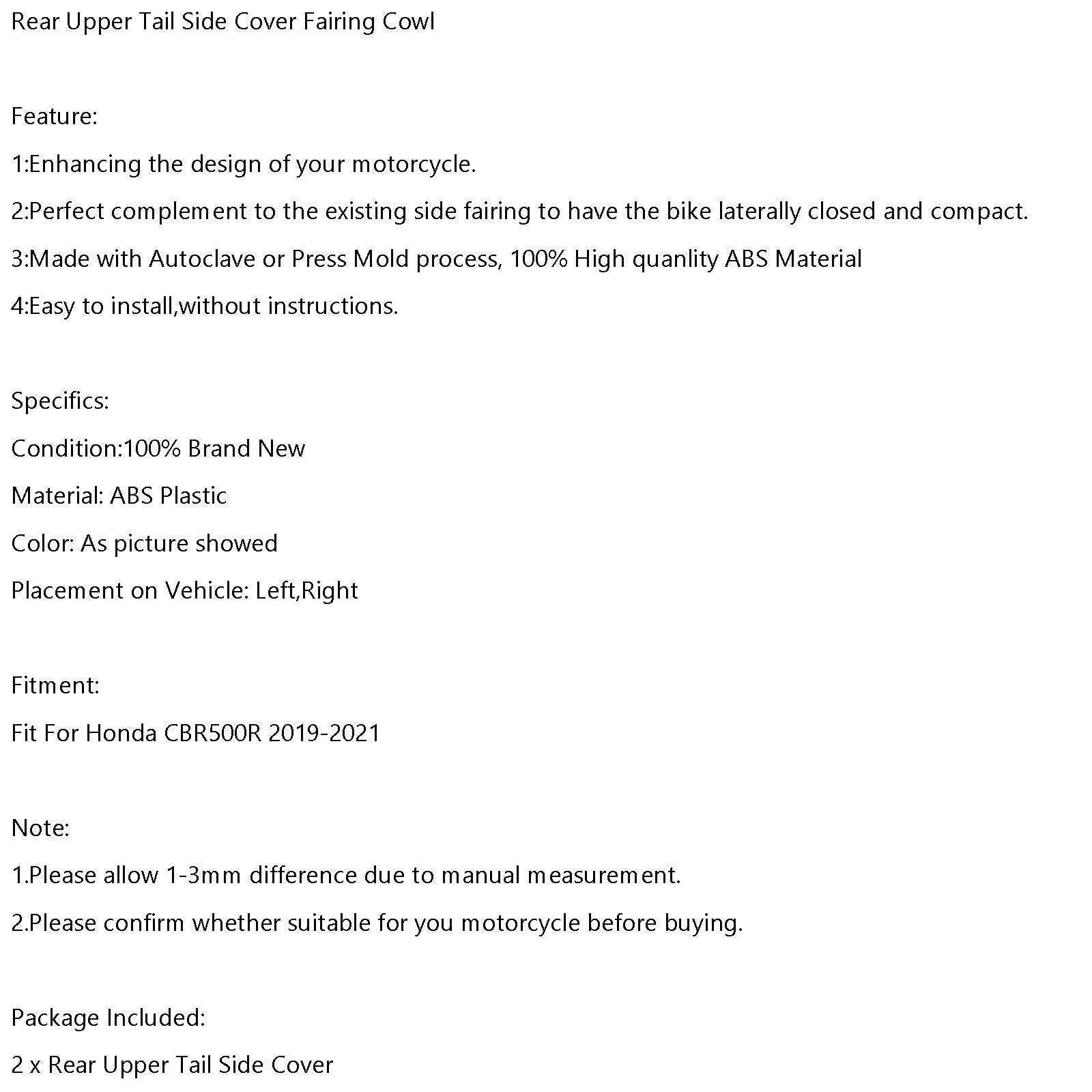 Capot de carénage latéral arrière supérieur pour Honda CBR500R 2019-2021