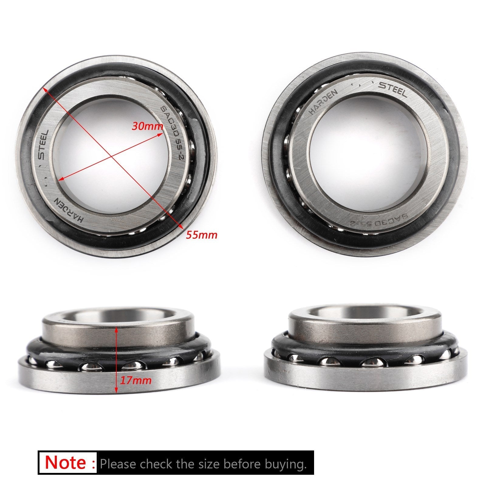 Dimensions du roulement inférieur : 30 x 55 x 17
