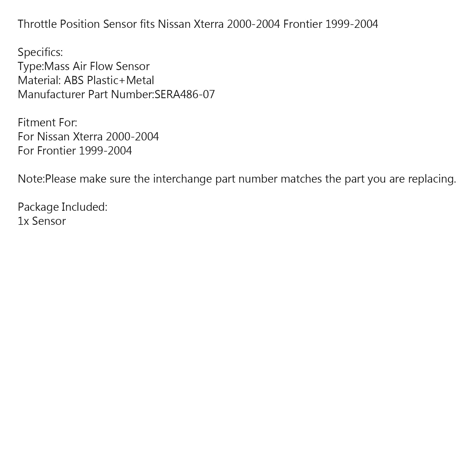 Capteur de position du papillon des gaz pour Nissan Xterra 2000-2004 Frontier 1999-2004