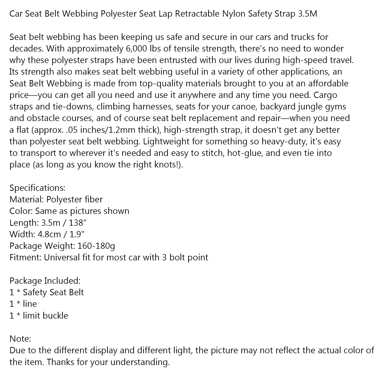 Sangle de ceinture de sécurité rétractable en nylon et polyester pour siège de voiture, 3,5 m
