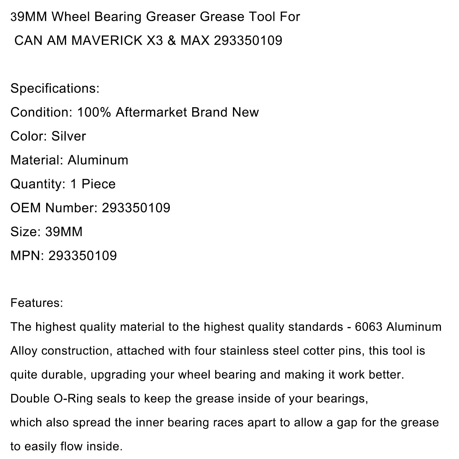 Compatible avec tous les roulements de roue Can Am 39MM #293350109.