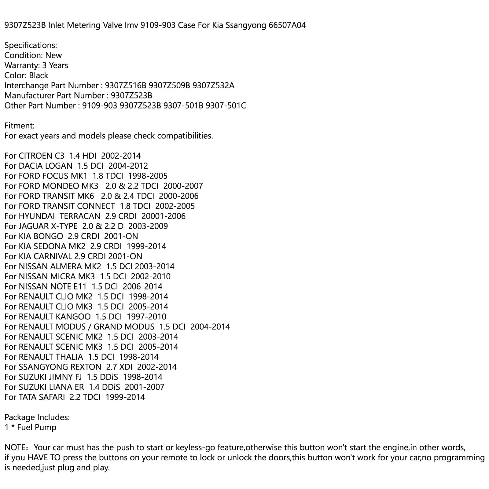 9307Z523B Inlet Metering Valve Imv 9109-903 Case For Kia Ssangyong 66507A04