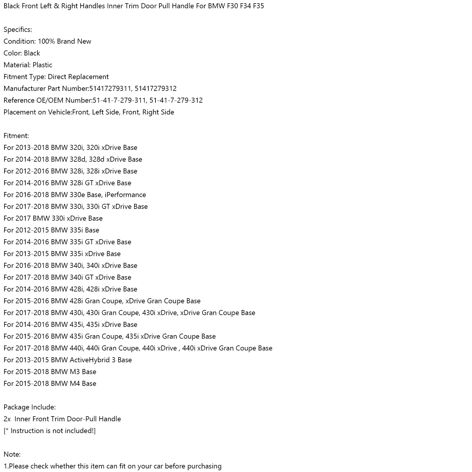 Black Front L+R Handle Inner Door Pull Handle For BMW F30 F34 F35 2013+