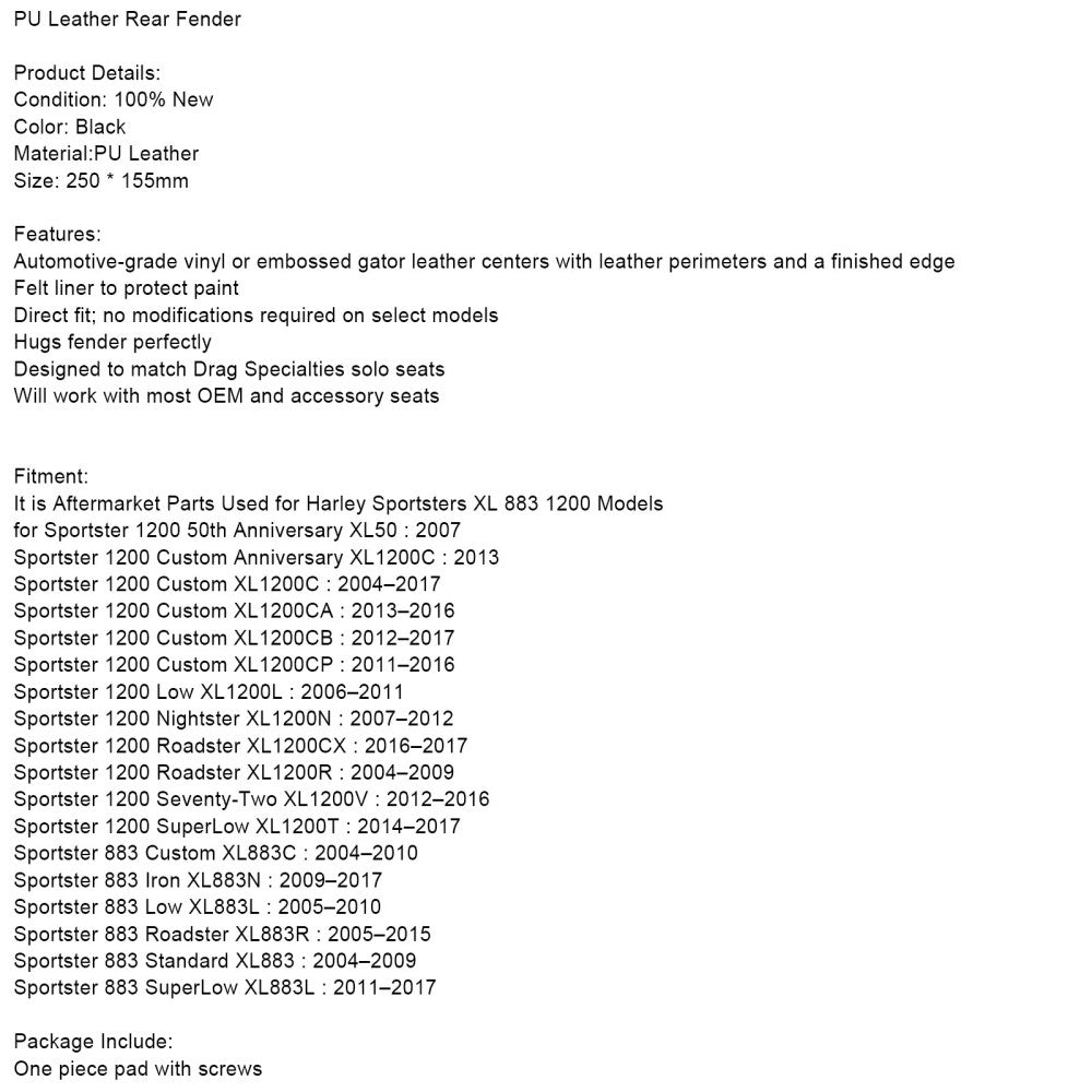 Black PU Leather Flame Stitch Solo Seat Rear Fender Bib For Sportster 1200 883