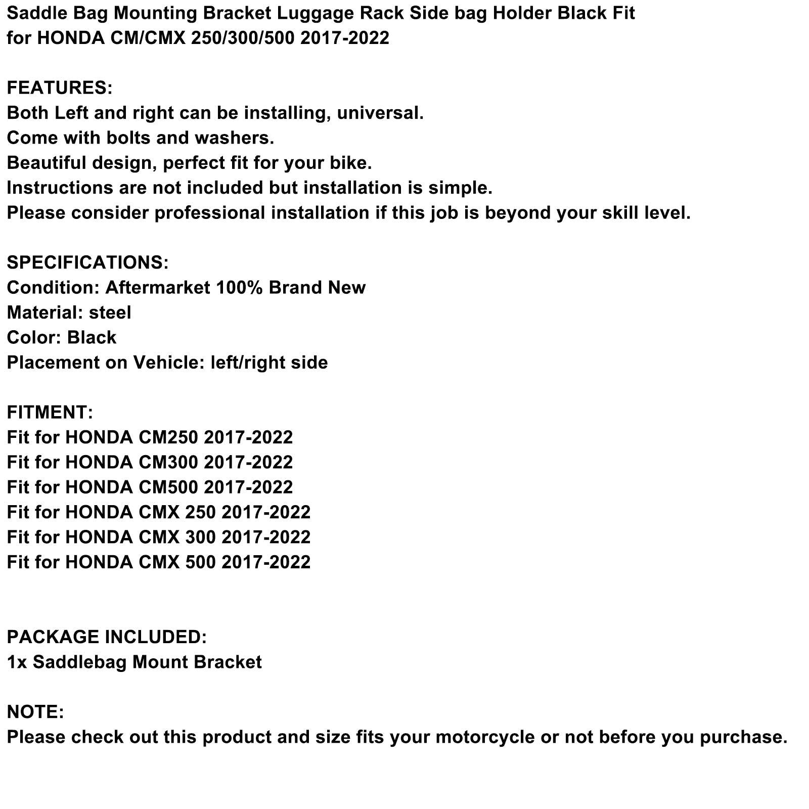 Luggage Rack Side Saddle Bag Mount Bracket Left For HONDA CM/CMX 300/500 17-22