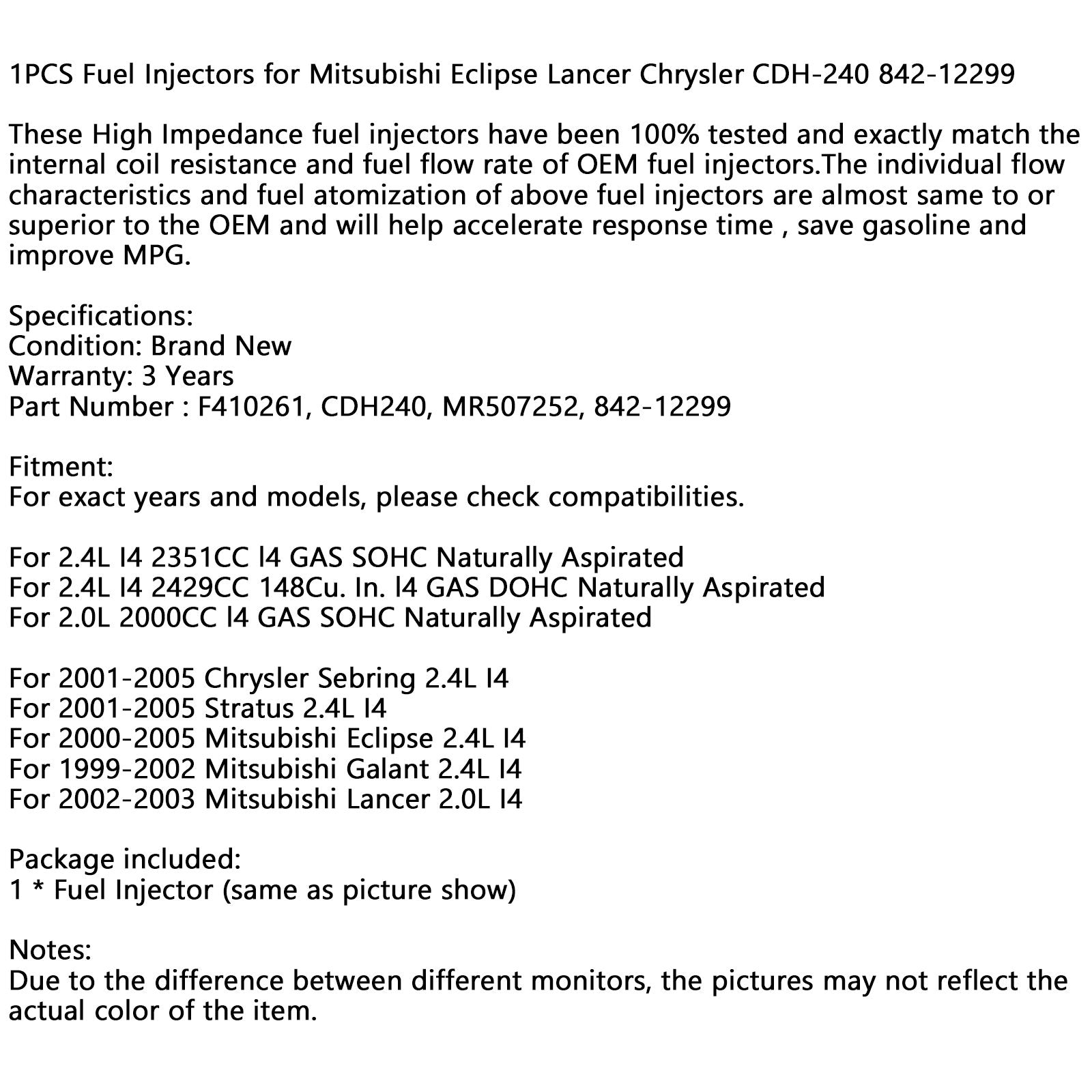 F410261 MR507252 842-12299 1PCS Fuel Injectors for Mitsubishi Eclipse Lancer Chrysler CDH-240 842-12299 Assosary