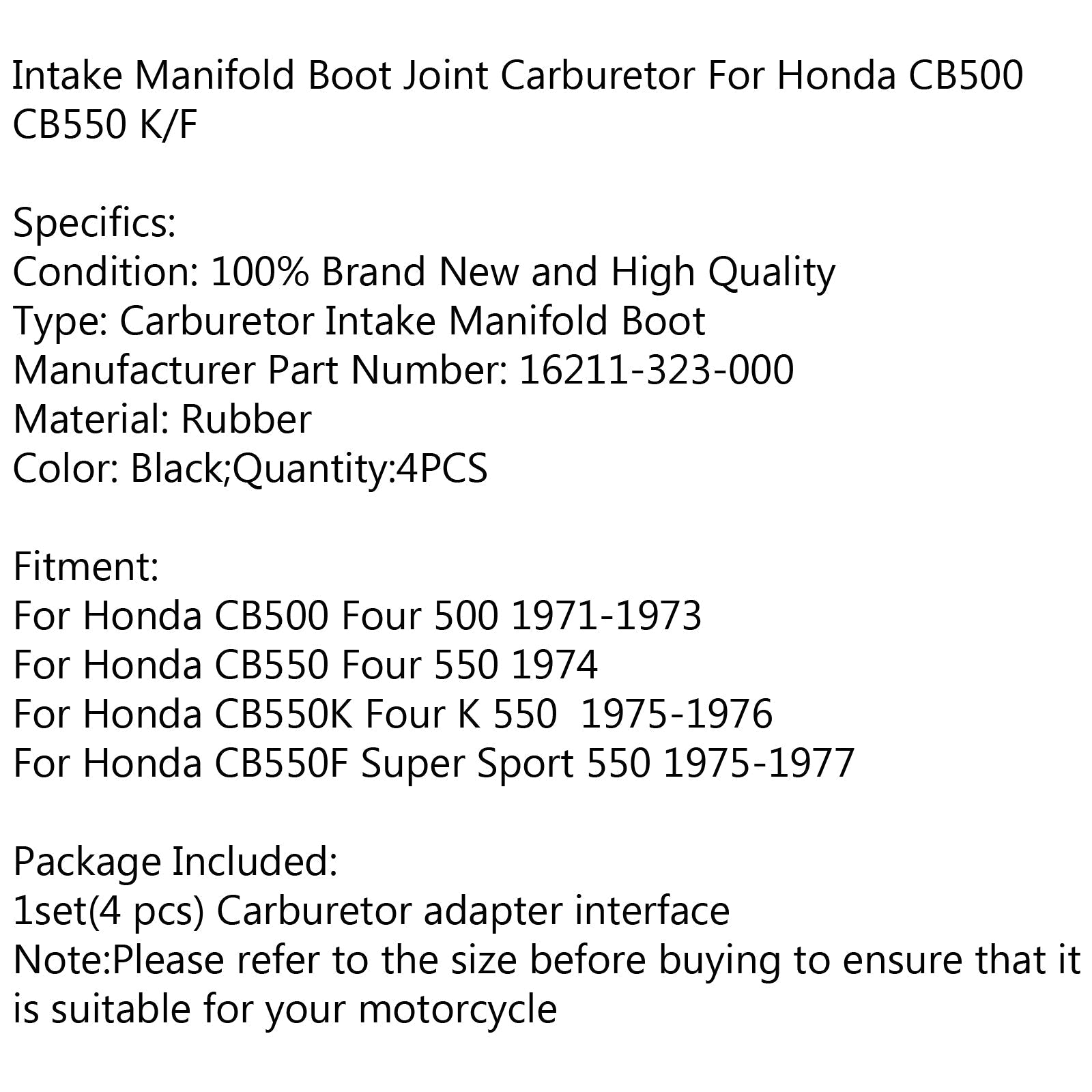 Carburetor Intake Manifold Boots 16211-323-000 For Honda CB500 K/F Four 550