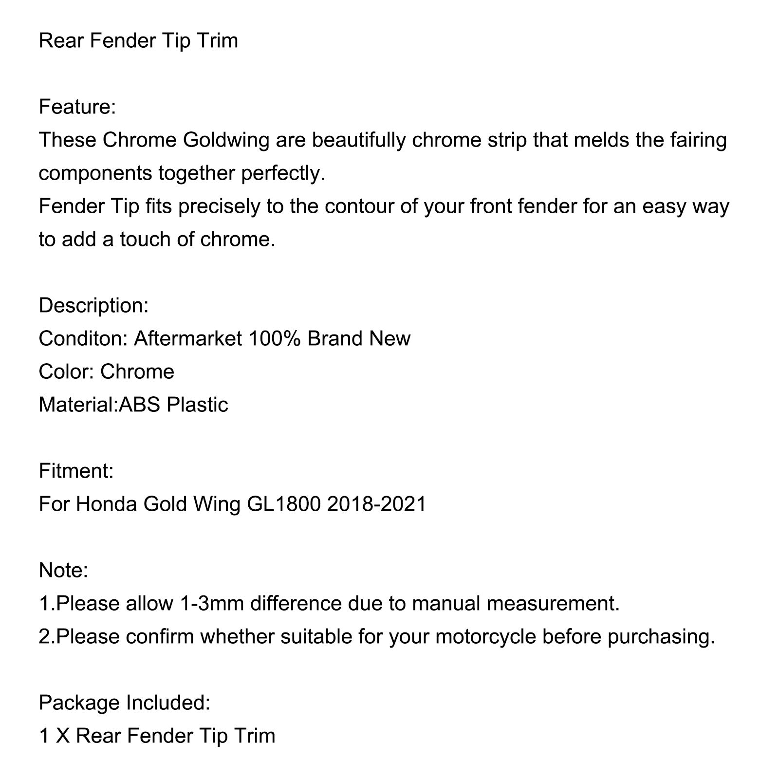 Chrome Rear Fender Tip Trim Accent Case for Honda Goldwing GL1800 1800 2018-2021