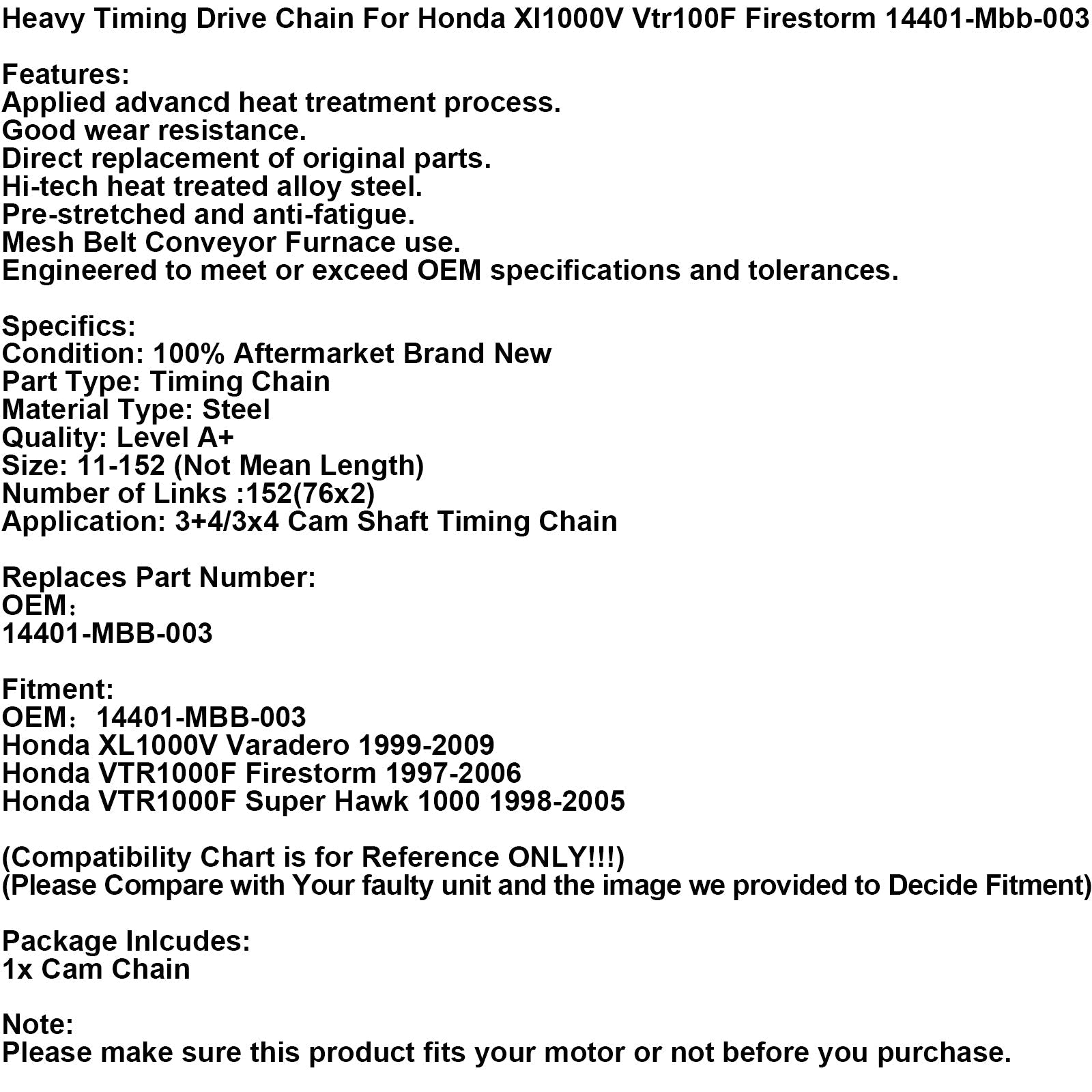 Heavy Timing Drive Chain For Honda Xl1000V Vtr100F Firestorm 14401-Mbb-003