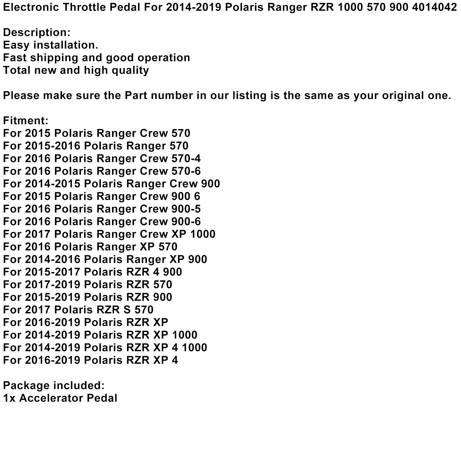 Electronic Throttle Pedal For 2014-2019 Polaris Ranger RZR 1000 570 900 4014042
