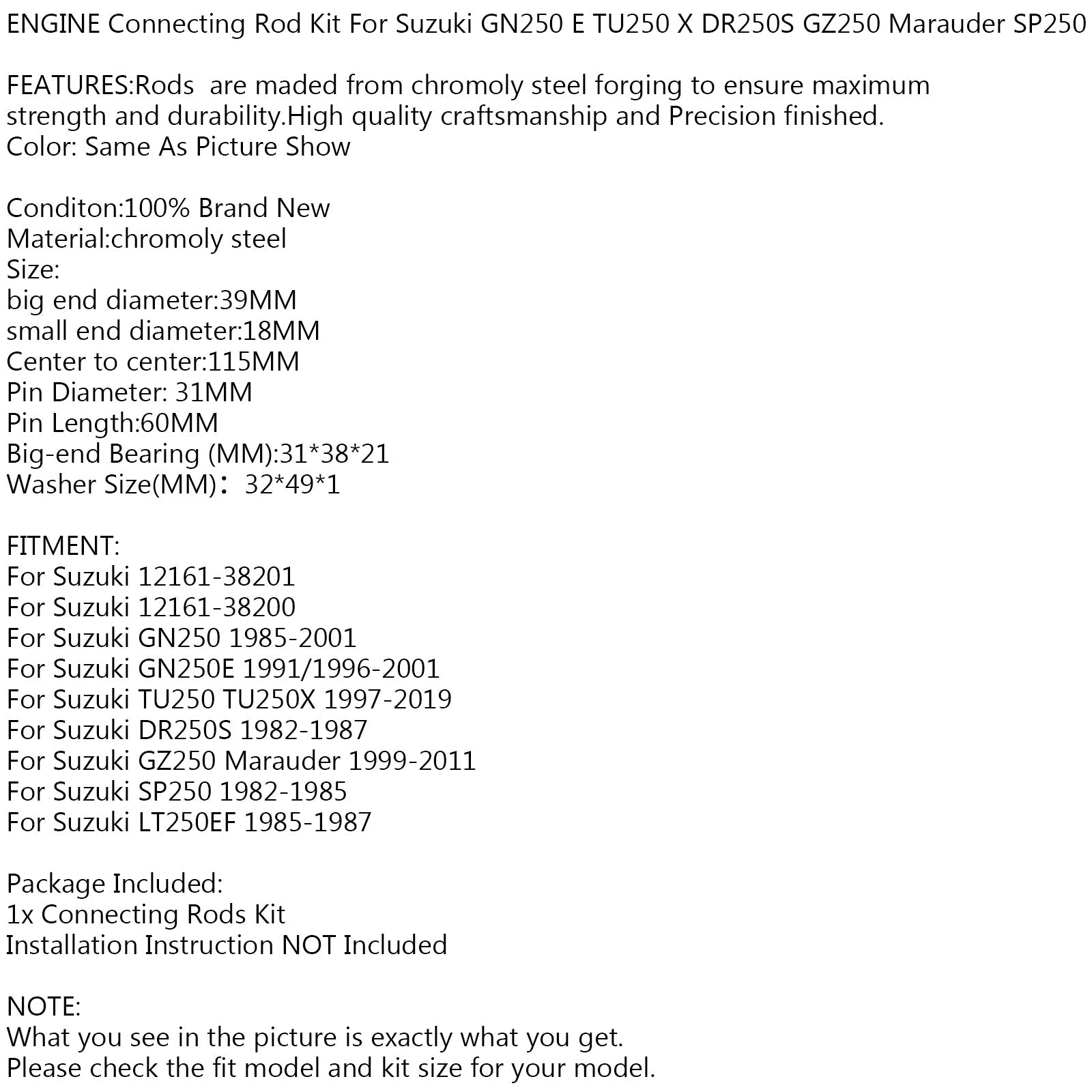 ENGINE CRANK CONNECTING ROD Kit For Suzuki 12161-38201 GN DR TU GZ SP LT 250 EF