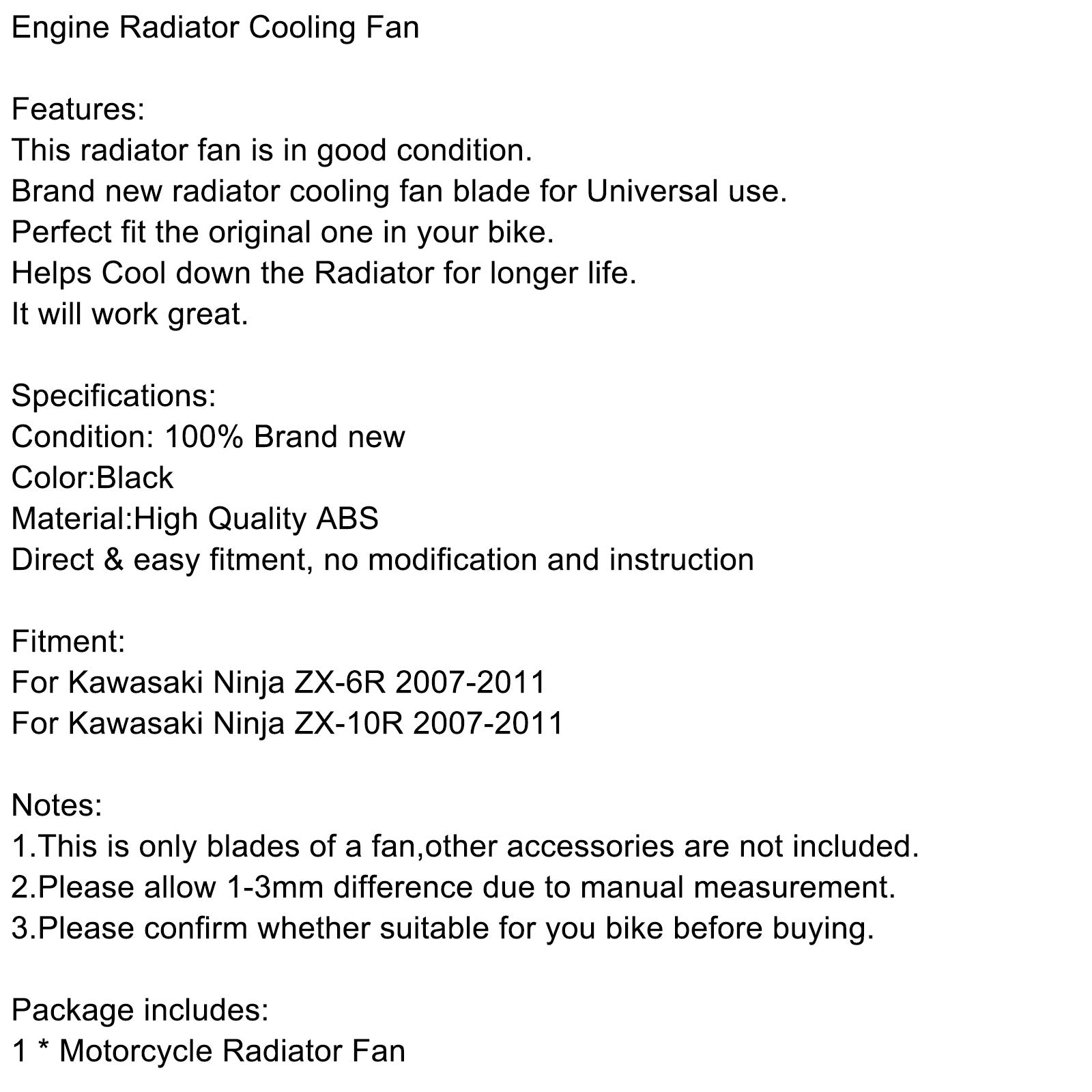 Engine Radiator Cooling Fan Blade For Kawasaki Ninja ZX-6R ZX-10R 2007-2011