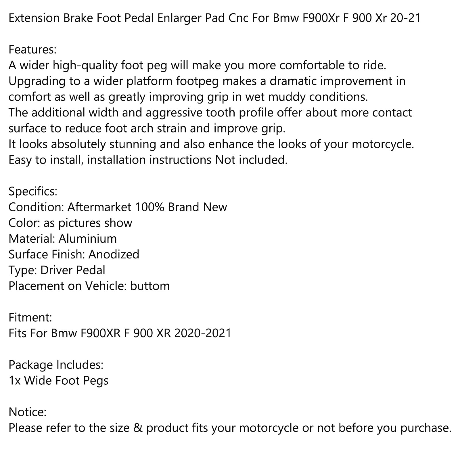 Extension Brake Foot Pedal Enlarger Pad Cnc For Bmw F900XR F 900 XR 20-21