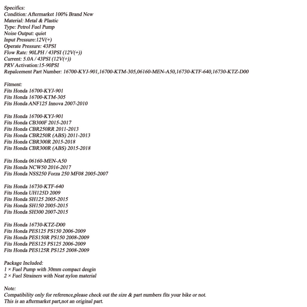 Fuel Pump & STRAINERS For For Honda CBR250R CBR250RR 11-13 CBR300R CB300F 15-18 AN125 Assosary