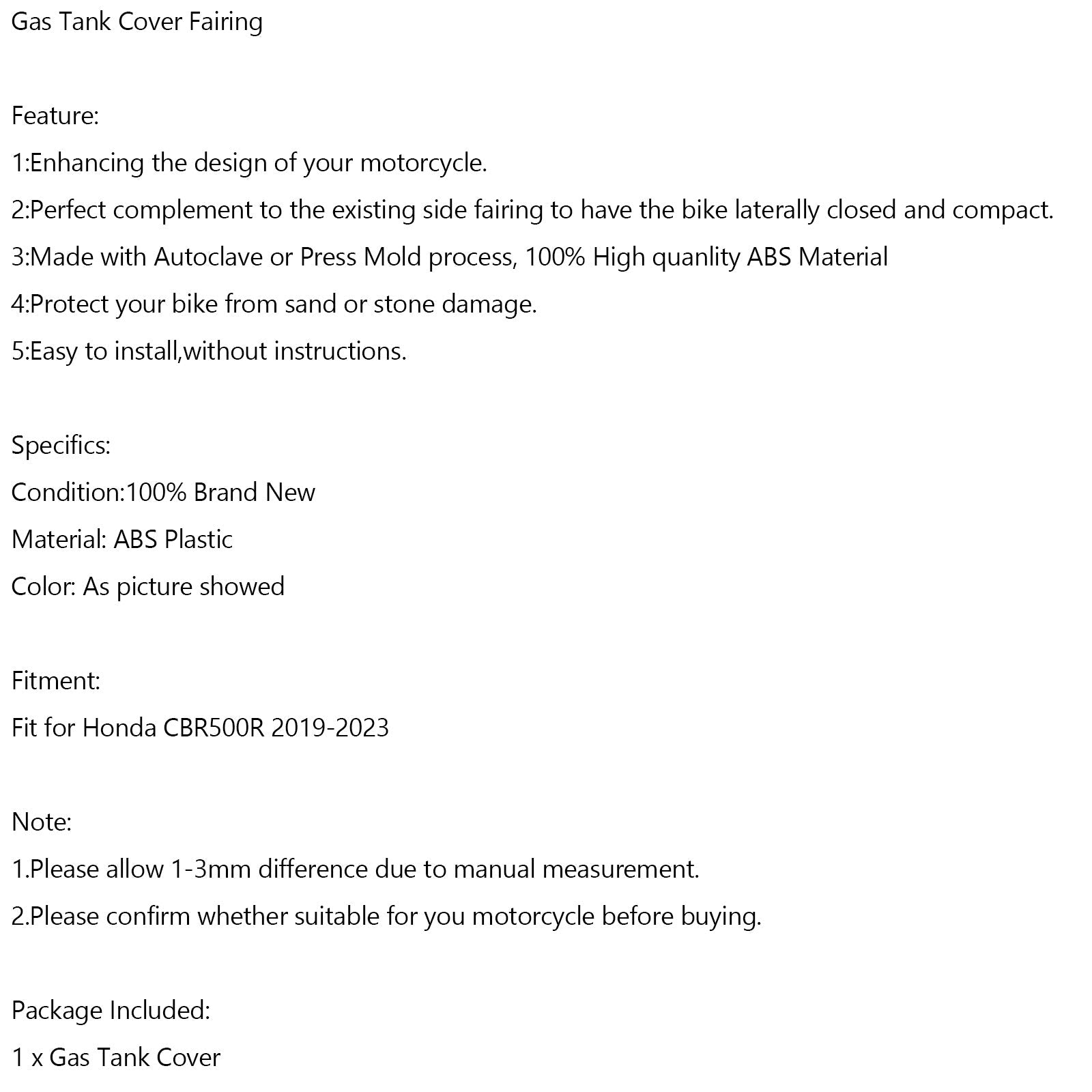 Gas Tank Cover Guard Fairing Protector For For Honda CBR500R 2019-2023