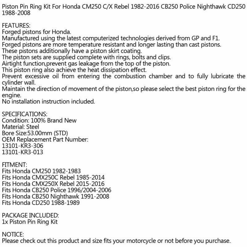 Piston Pin Ring Kit For Honda CM250 C/X Rebel 1982-2016 CB250 Police Nighthawk CD250 1988-2008