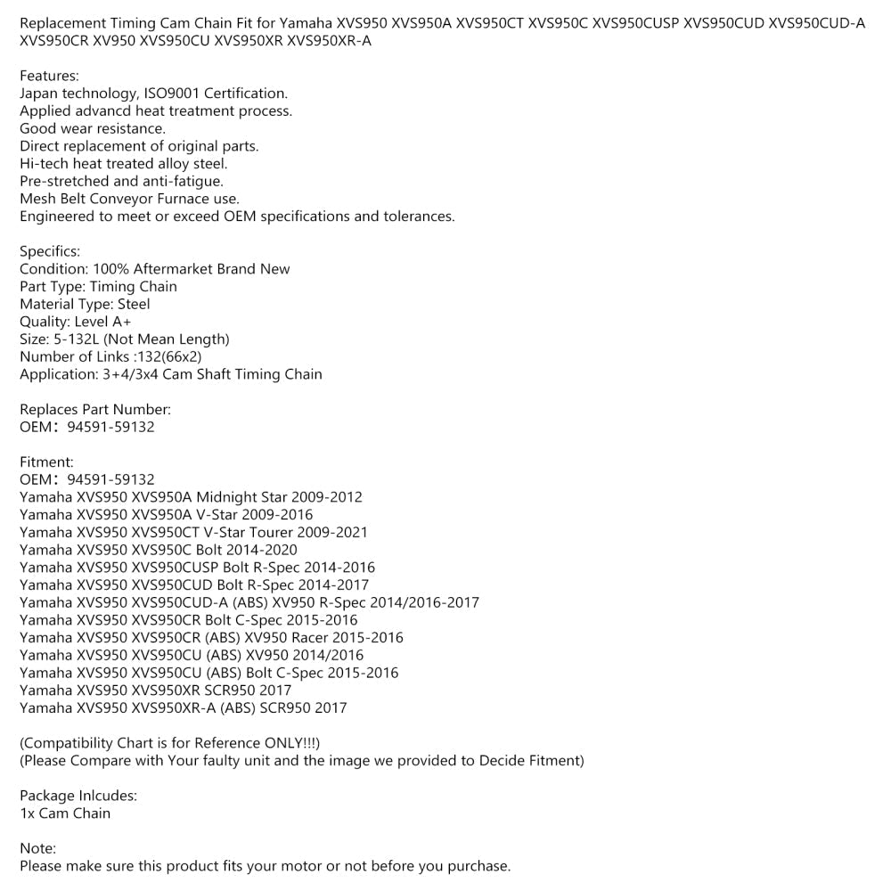 Replacement Timing Cam Chain Fit for Yamaha XVS950 XVS950A XVS950CT XVS950C XVS950CUSP XVS950CUD XVS950CUD-A XVS950CR XV950 XVS950CU XVS950XR XVS950XR-A