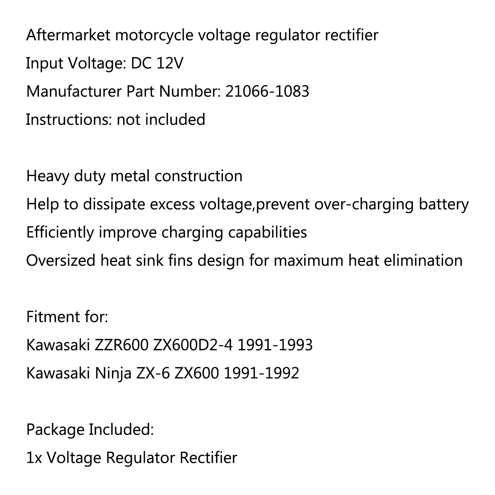 Aftermarket motorcycle voltage regulator rectifier Heavy duty metal construction Fitment for: Package Included: